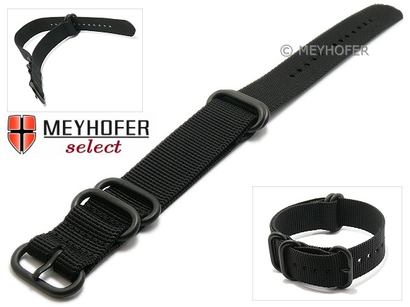 Uhrenarmband "Maryland" in 20mm schwarzem Textil 4 schwarze Metallschlaufen einteiliges Gurtband von MEYHOFER